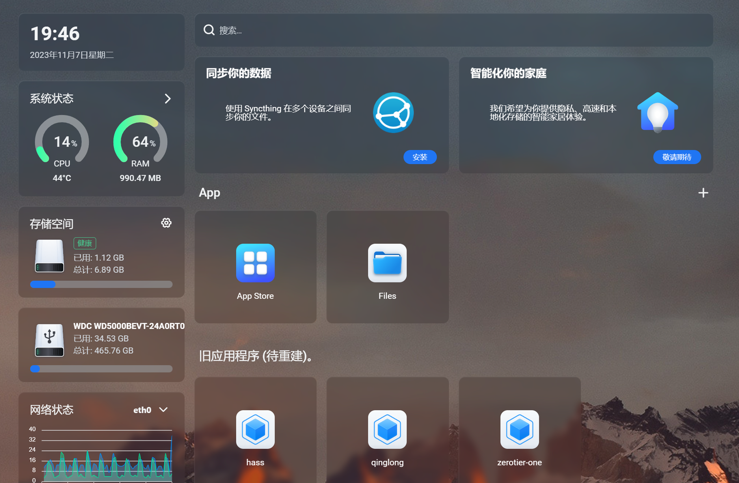 系统刷好之后就可以开启服务器的作用了,可以安装Docker容器挂青龙面板等,因为玩客云的储存只有8G,系统已经占用一部分,所以得加个硬盘或者U盘、SD卡增加储存,否则没过几天就满了。