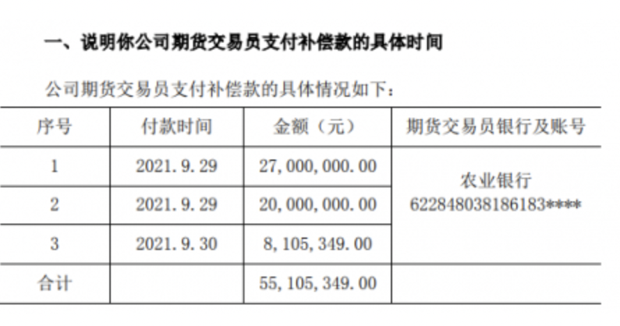 直至2021年9月27日,期货交易员才向公司汇报相关情况,并承诺依据相关考核办法承担全部损失。