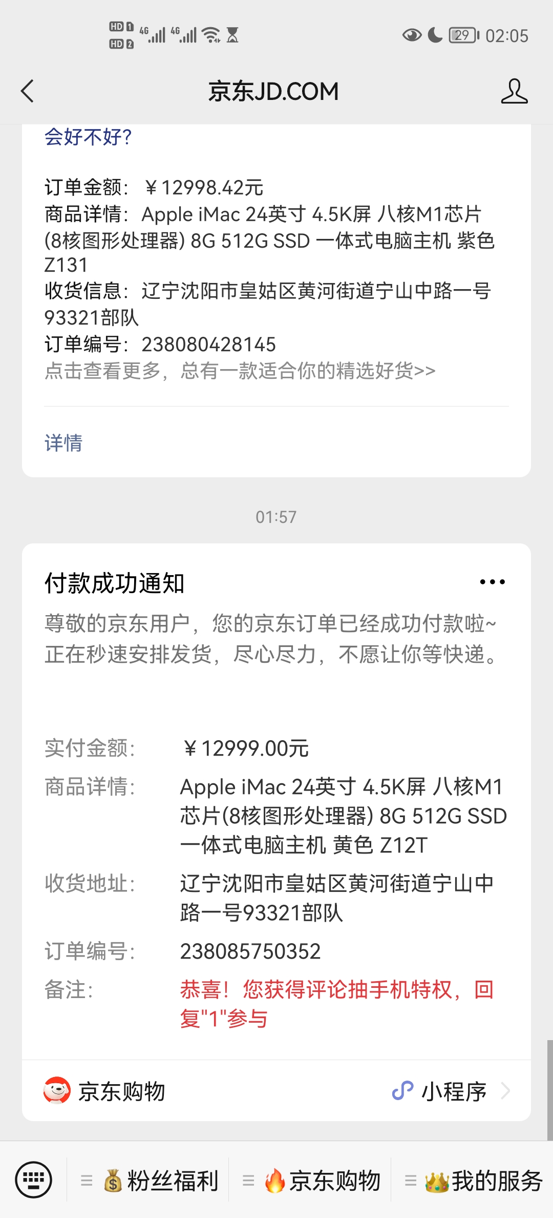 凌晨2点下的单(1个小时前也下了,只不过选了个不喜欢的颜色)