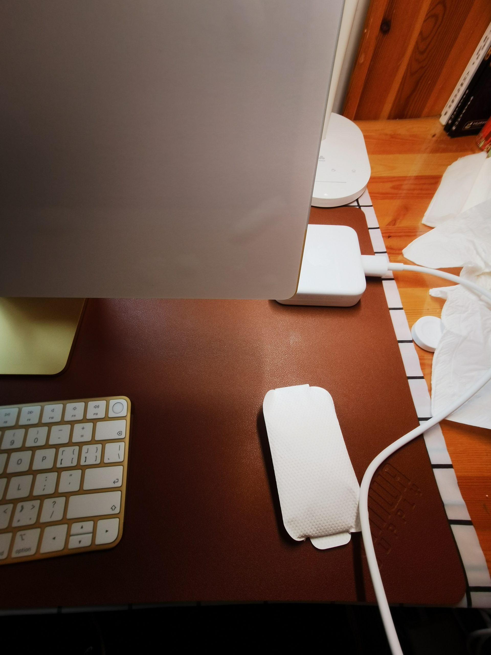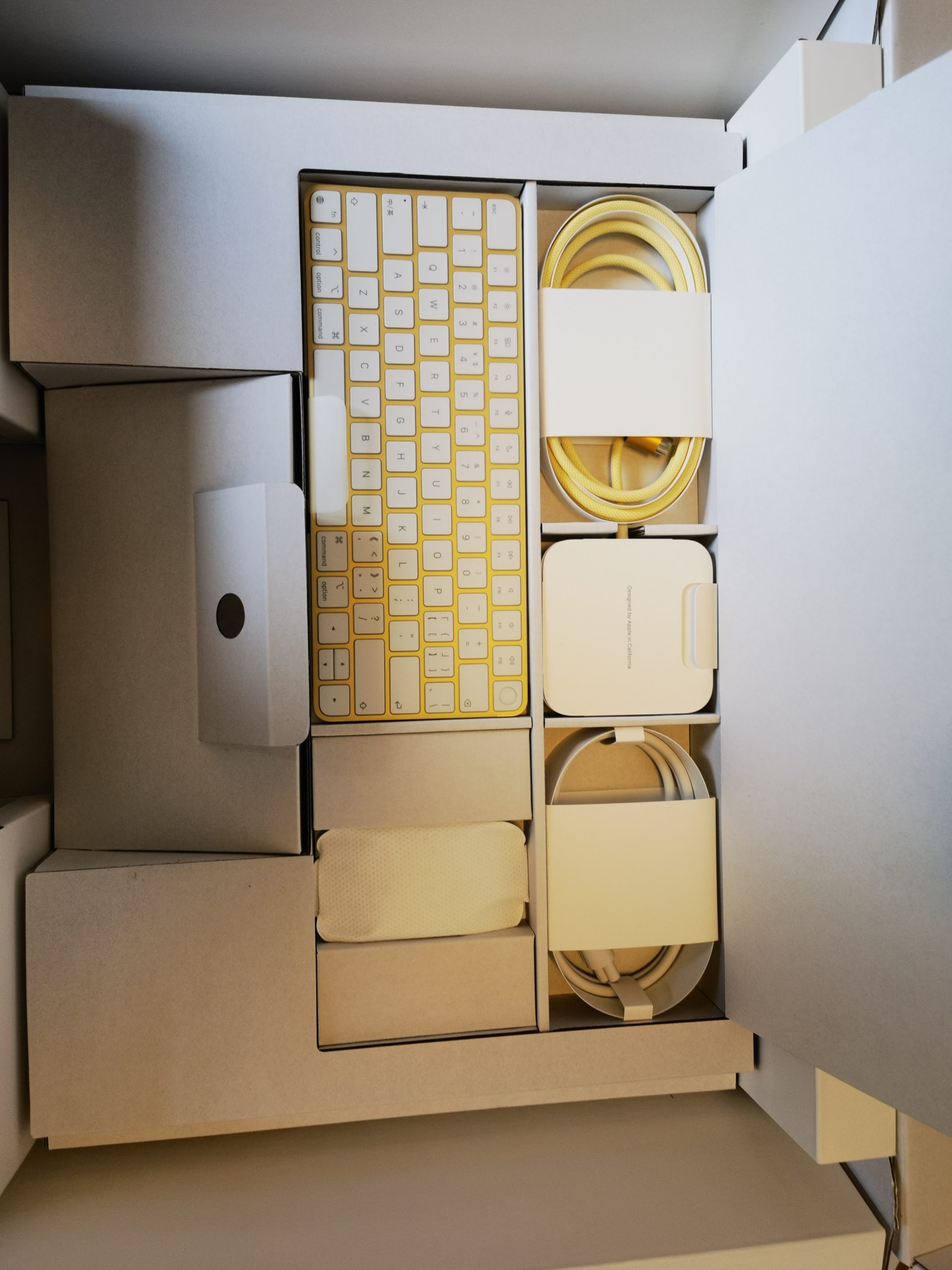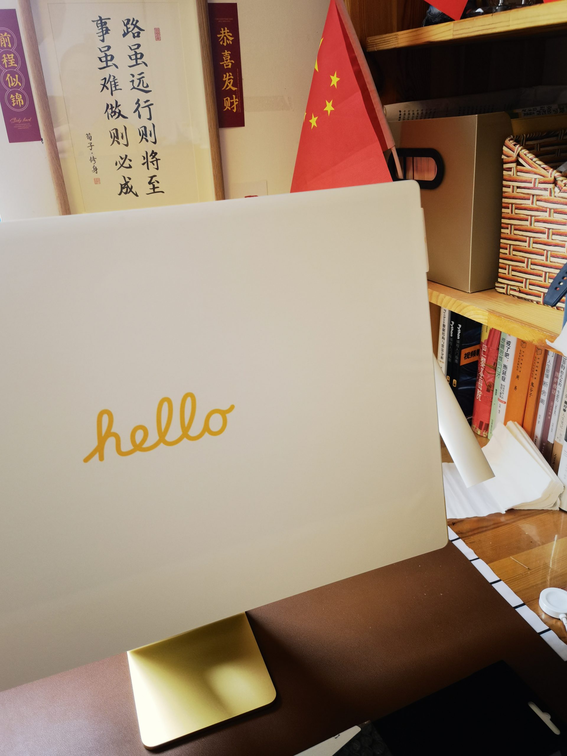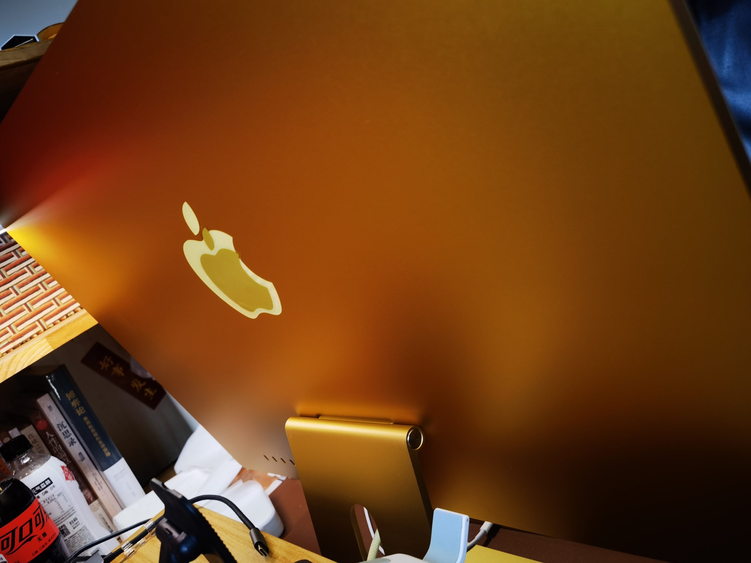 我的书桌是浅黄色,刚开始选的iMac 紫色,思索片刻还是直接更换了黄色;